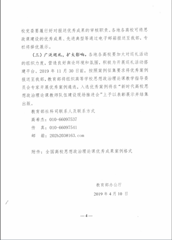 三、630,各高校思想政治理论建设的优秀成果可随时报送至省教育厅思政处邮箱,由向教育部推荐参与网络巡礼媒体巡礼。邮件主题标注为思想政治理论课建设优秀成果+学校名称