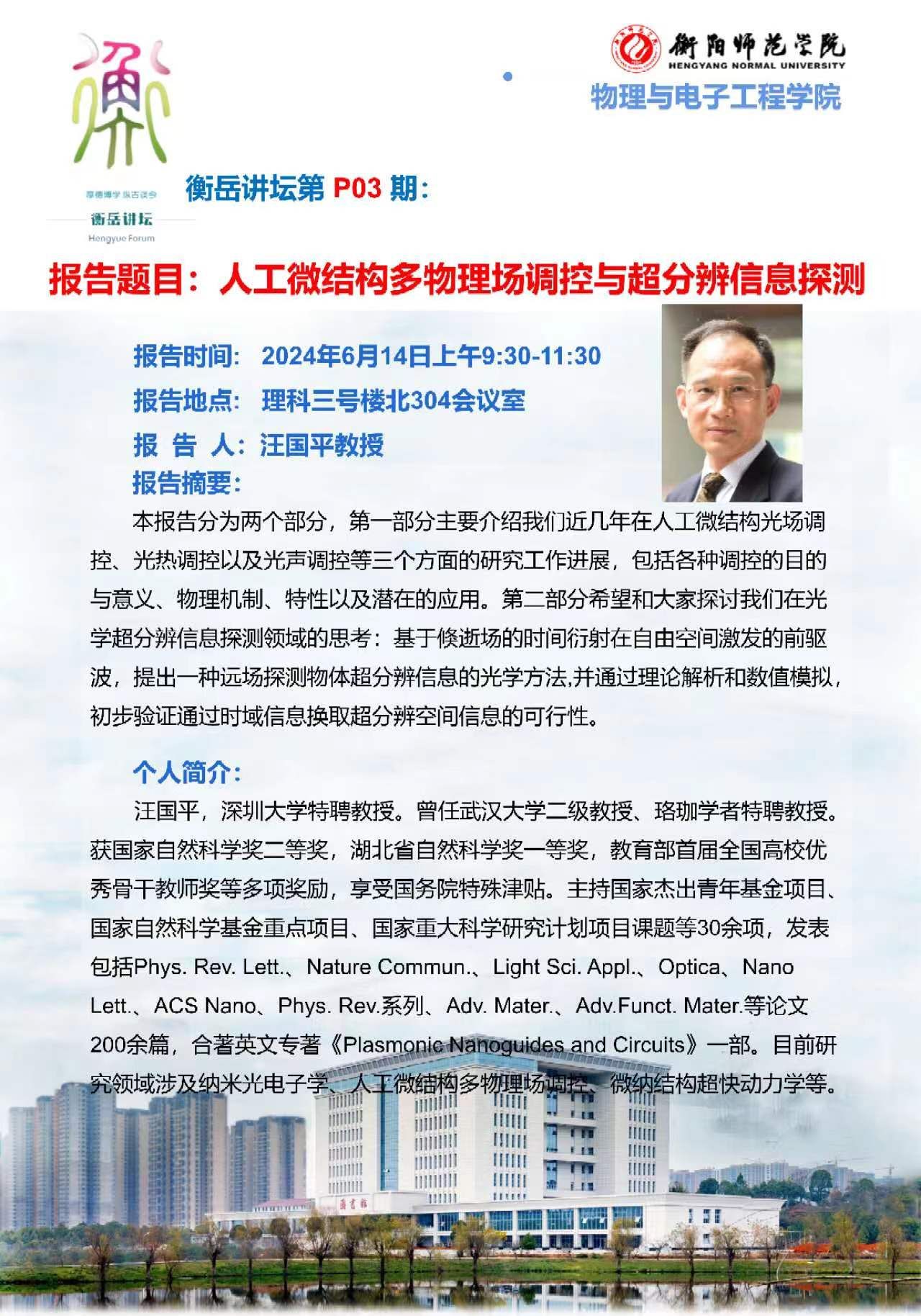 汪国平:人工微结构多物理场调控与超分辨信息探测