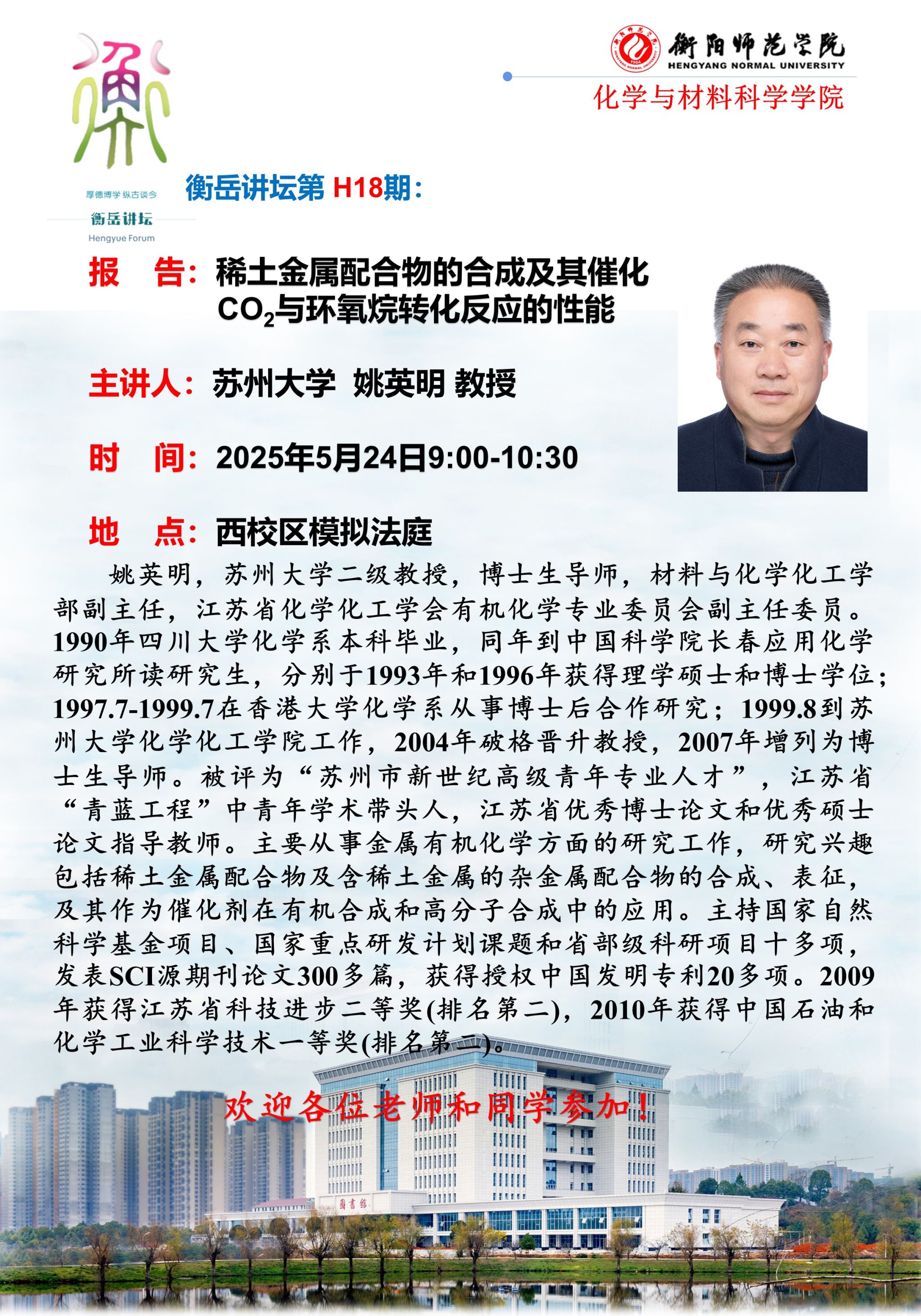 姚英明:稀土金属配合物的合成及其催化CO₂与环氧烷转化反应的性能