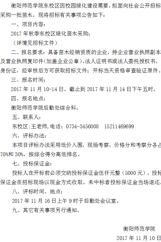 艾弗森贝博ballbet官网东校区2017年秋季绿化苗木采购招标公告
